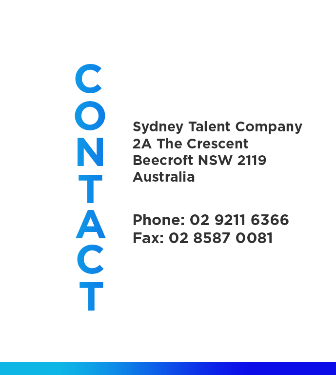 For casting opportunities, Juliana is currently represented by the Sydney Talent Company: